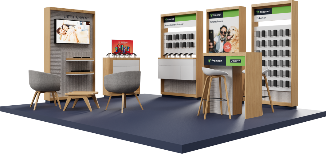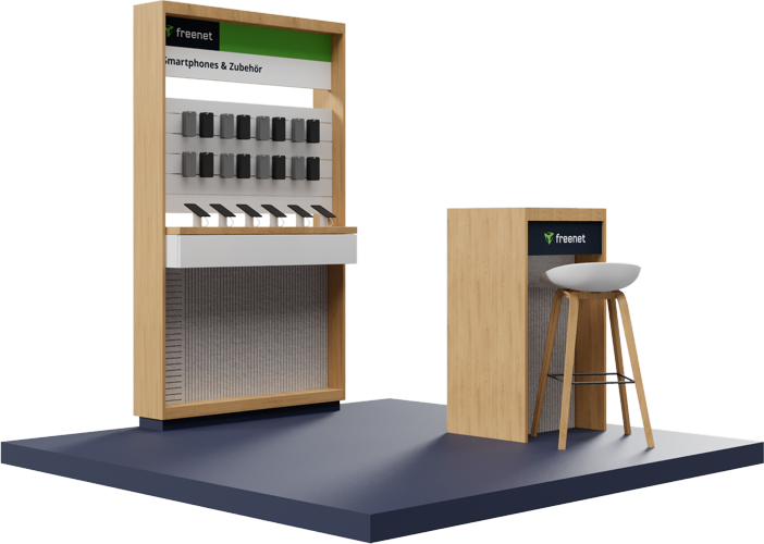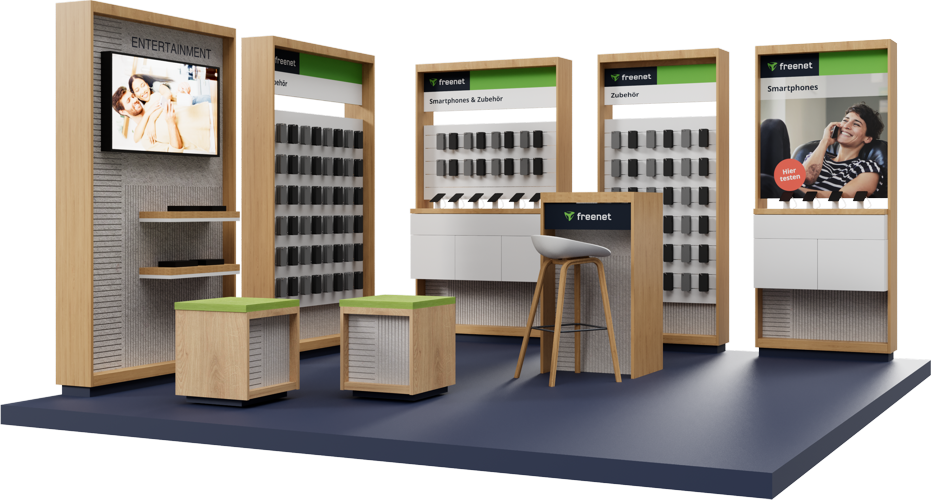 So entstehen einladende Räume, die die Marke freenet optimal präsentieren und die Markenidentität unterstreichen.